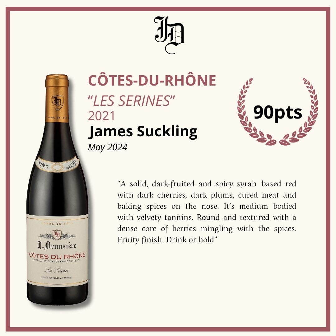 100% Syrah. De vergisting vindt plaats in RVS en betonnen tanks waarna en deel wordt gerijpt in houten vaten. Veel perfect gerijpt fruit, pepertje, rond, fris en elegant. Een uitzonderlijk mooie Cotes du Rhone.90pt van James Suckling
